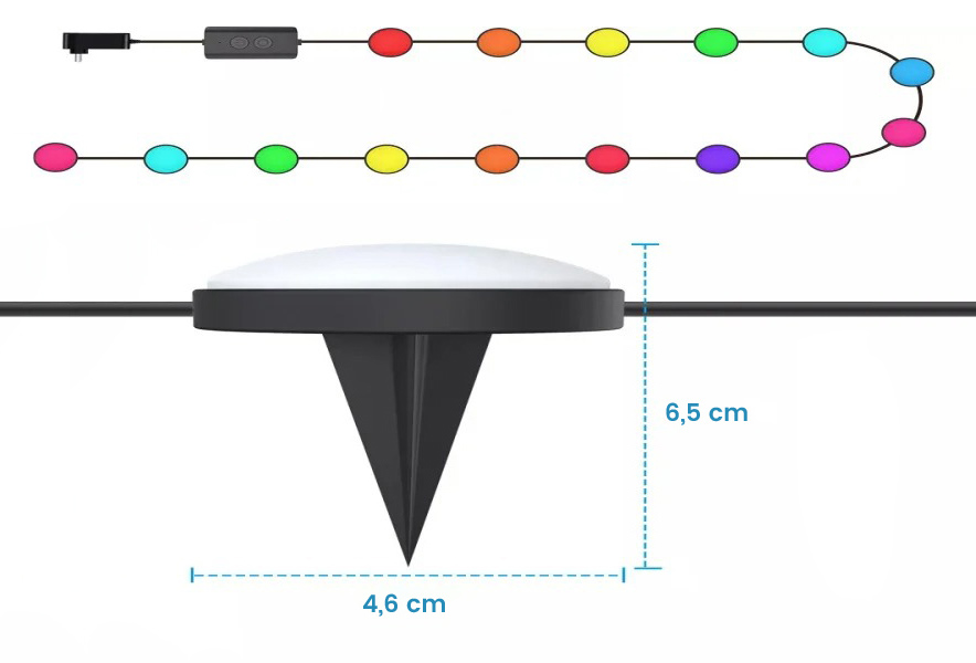 Wejdź na nowy poziom dekoracji ogrodu przy użyciu naszego zestawu oświetlenia LED RGBIC! Zmieniający kolory efekt sprawi, że Twój ogród rozświetli się niepowtarzalnym i magicznym blaskiem. Odkryj nowy wymiar piękna swojego ogrodu!
